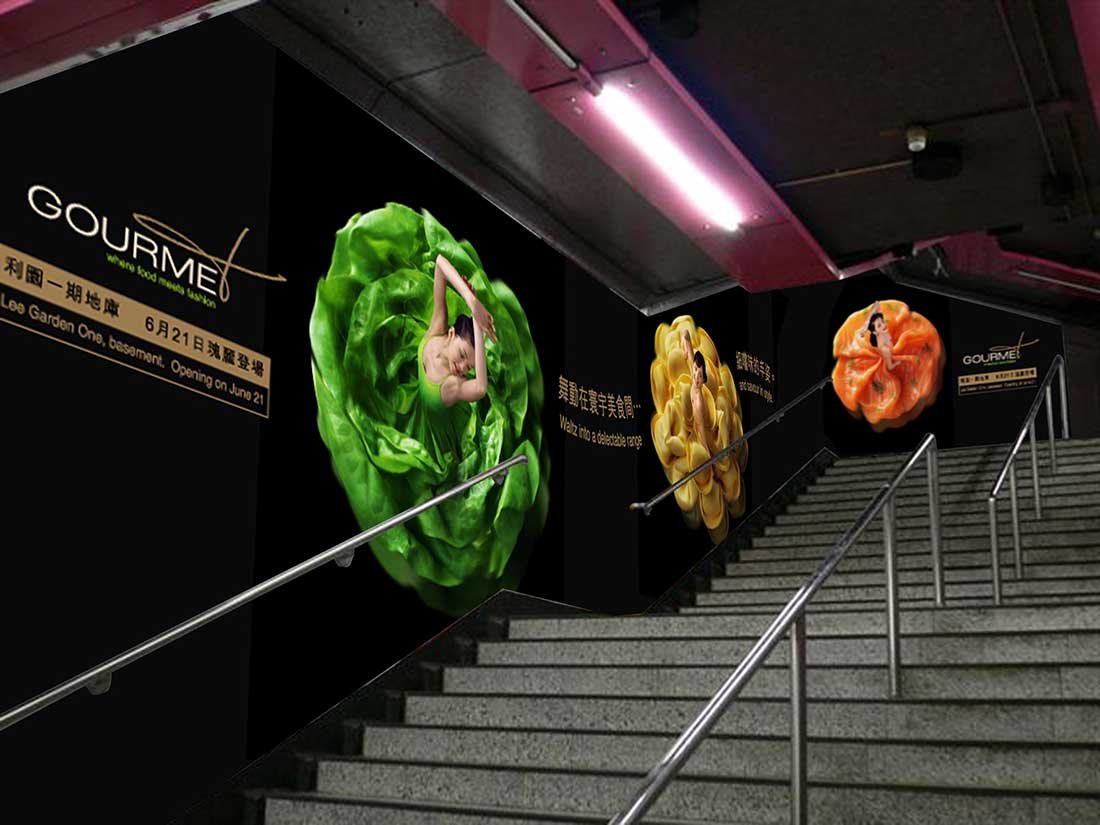 The visual idea came from when I went to the site for inspection, looking down from the upper level, I found that the customers were elegantly pushing the shopping carts, as if they were dancing. Lee Gardens is a fashionable shopping mall, so the concept of “Gourmet, where fashion meets food” came alive.